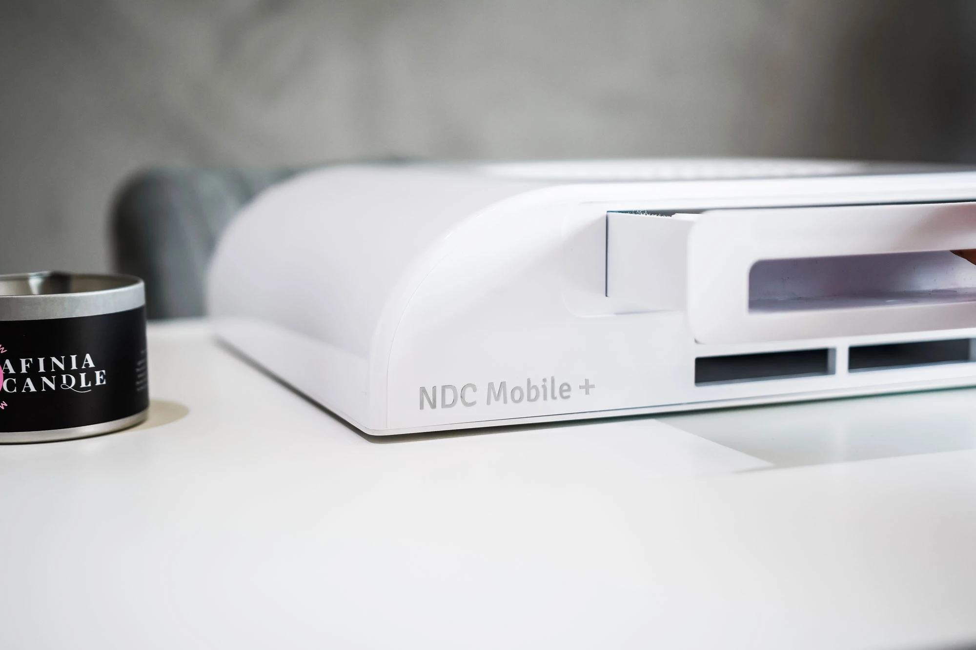 Transportabel, let og sparsommelig – skabt til negleteknikere, der er på farten. Enhedens effektivitet er sammenlignelig med den stationære version. Der fås også udskiftelige filtre til denne model.